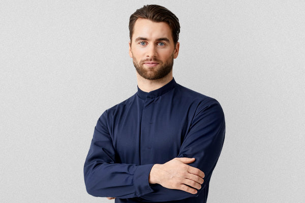 Men's Chef Shirt Slim-Fit With Long Sleeves & Pen Pocket